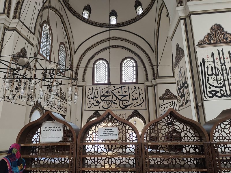Di Masjid Bursa Turki, atau juga dikenal dengan Ulu Camii, dinding-dindingnya dipenuhi dengan gantungan kaligrafi Arab, penuh pesan indah dan sangat berharga. Setiap melihat dindingnya, seperti melihat risalah kenabian. Dindingnya seperti berbicara mengajak orang yang mendatangi masjid untuk berdialog, merenung dan berfikir. Dan rerata masjid-masjid di Turki dipenuhi tulisan kaligrafi Arab, tidak hanya masjid tapi juga makam-makam sultan, seperti makam Sultan Mahmud dekat Green Musque yang juga terletak di Bursa.