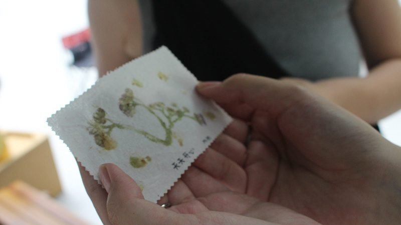 “Wah aku baru pertama kali mengetahui ecoprint dan langsung mencoba membuatnya, sungguh menyenangkan!” ucap Min sembari mengayunkan palunya di atas kain ecoprint miliknya.