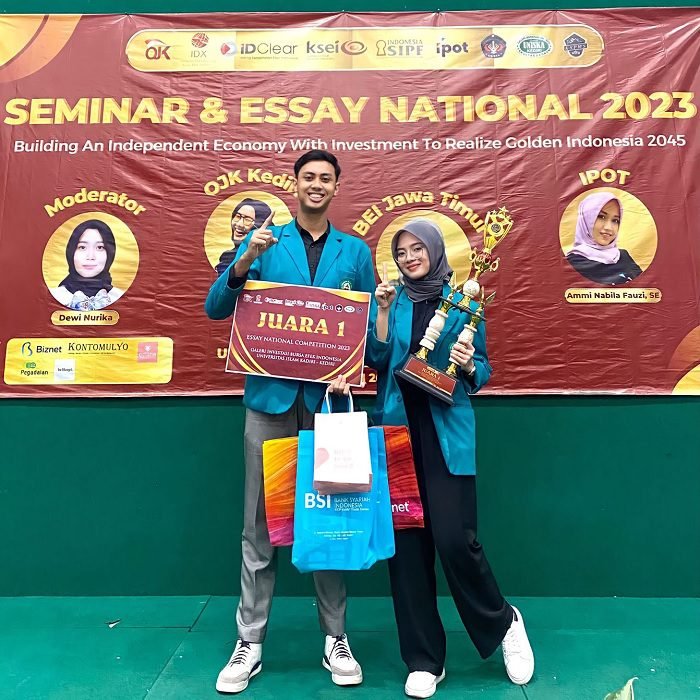 Dekan yang dikenal inovatif ini menjelaskan pula, kompetisi nasional Essay yang digelar oleh Galeri Investasi Universitas Islam Kediri ini bekerja sama dengan BEI Kanwil Jatim dan OJK Kediri.