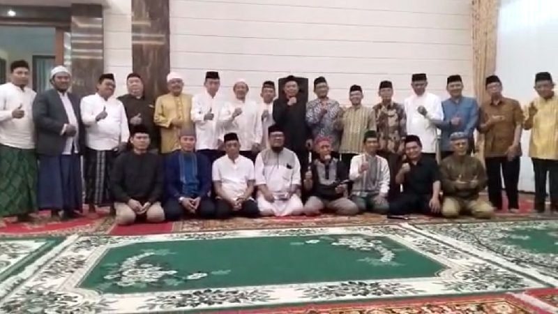 MULIAKAN SANTRI. KH Achmad Mudjayyid (kanan) berdoa untuk keberkahan Pondok Prestasi Ibadurrahman dan para santrinya. Foto: Abdul Muntholib