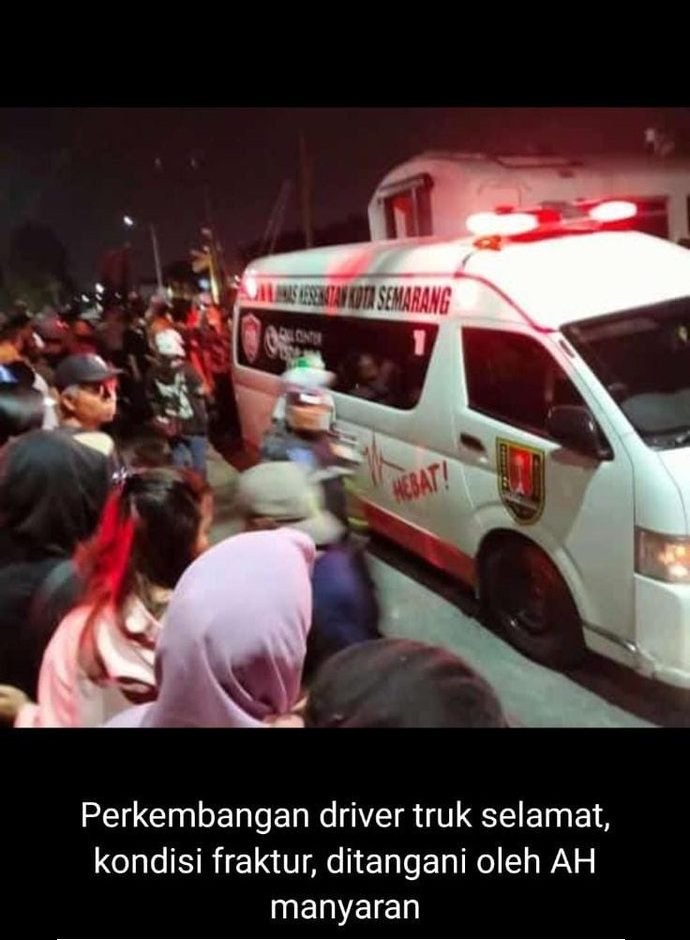 Kondisi supir truk dikabarkan selamat meski luka parah. Sementara penumpang kereta api juga diinformasikan selamat.