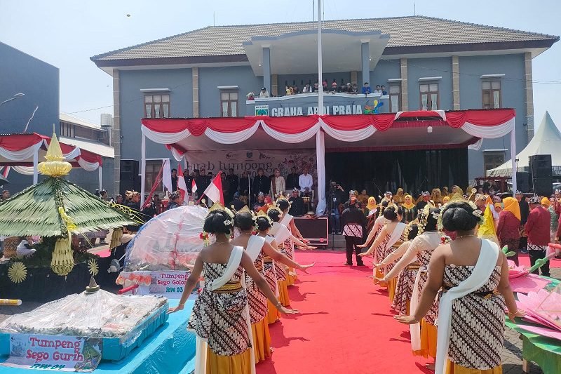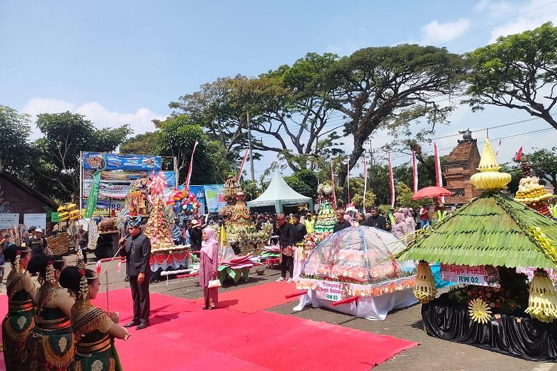 “Jadi nanti semua yang hadir berkumpul di akhir sesi dan nanti ada tradisi purak tumpeng yang memang ini hasil bumi seperti polo pendem, jenang abang, sego kuning, dan hasil bumi lainnya,” pungkasnya.