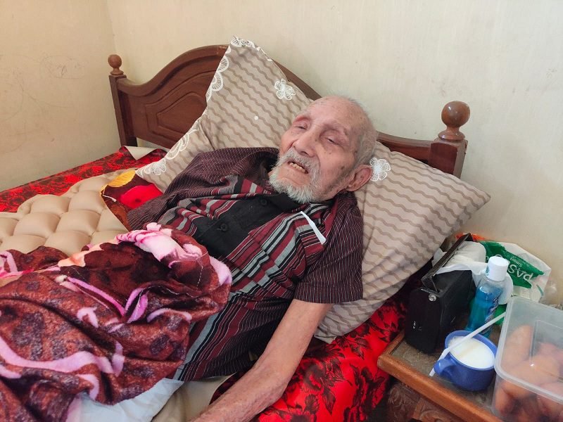 Sudah hampir dua tahun, Mbah Kodir terbaring di tempat tidur, karena salah satu kakinya tidak bisa digerakkan akibat terpeleset di kamar mandi.