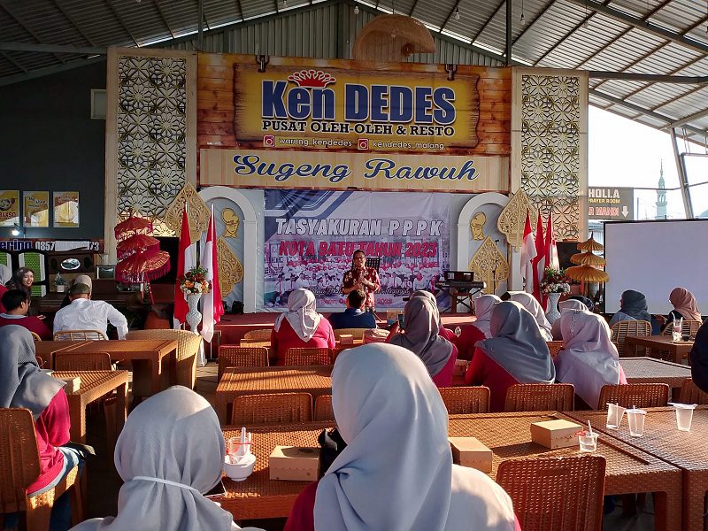 SIARINDOMEDIA.COM – Sebanyak 78 Pegawai Pemerintah dengan Perjanjian Kerja (PPPK) Guru Angkatan 3 Kota Batu mengadakan tasyakuran di Kendedes Resto pada Jumat (6/9/2023) sore. Kegiatan ini dilakukan sebagai bentuk rasa syukur atas perjuangan dan dedikasi yang telah dilakukan selama ini.