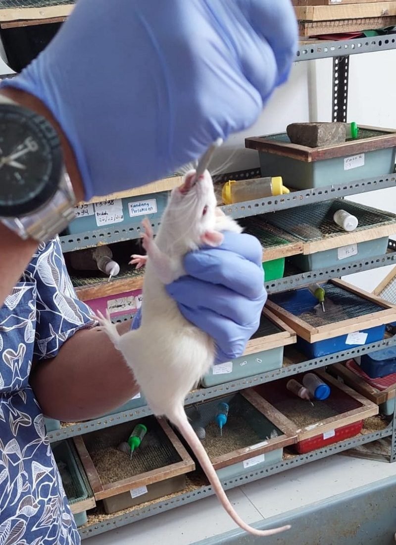 “Pada penelitian ini kami membuat Tikus Model Alzheimer yang diinduksi dengan Amyloid Beta, lalu diinduksi kembali secara rutin dengan obat ekstrak kelor terenkapsulasi emas buatan kami. Selanjutnya kami melakukan beberapa uji terhadap tikus, terutama adalah uji tingkah laku kognitif tikus,” ujar Adi.