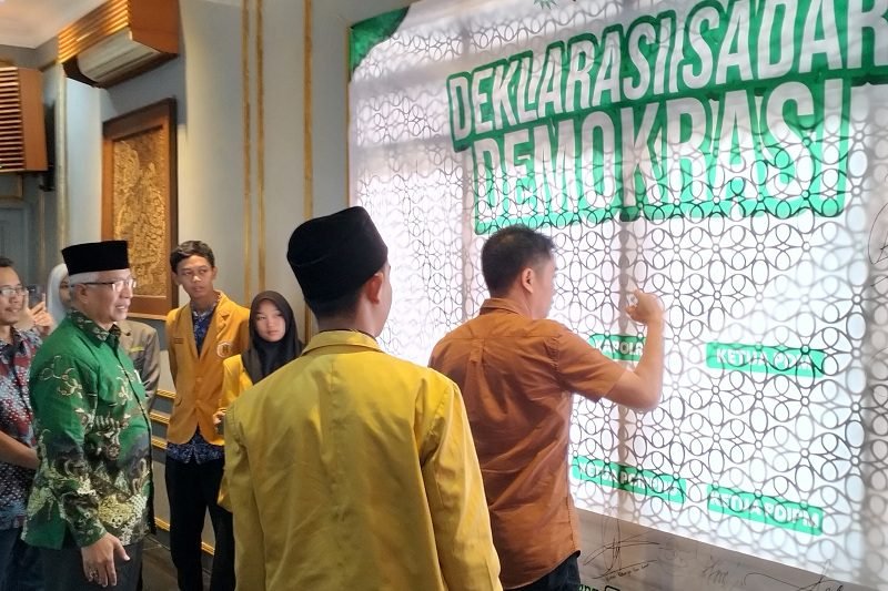 Selain itu, perwakilan pengurus PC IPNU-IPPNU, PD IPM, PCNU, PD Muhammadiyah dan Polresta Malang Kota menandatangani poster Deklarasi Sadar Demokrasi yang diharapkan nantinya segenap lapisan pelajar yang hadir dalam giat ini dapat mengawal keamanan pemilu yang sedang berlangsung saat ini.