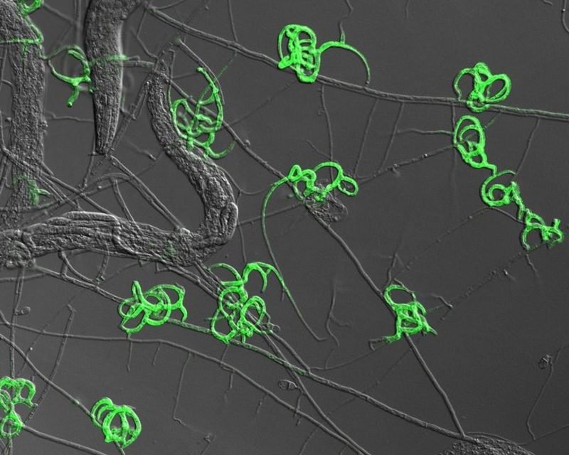 Arthrobotrys oligospora merupakan jamur yang biasanya memakan sisa-sisa organik seperti daun yang membusuk, tetapi mereka ternyata juga dapat berubah menjadi predator karnivora.