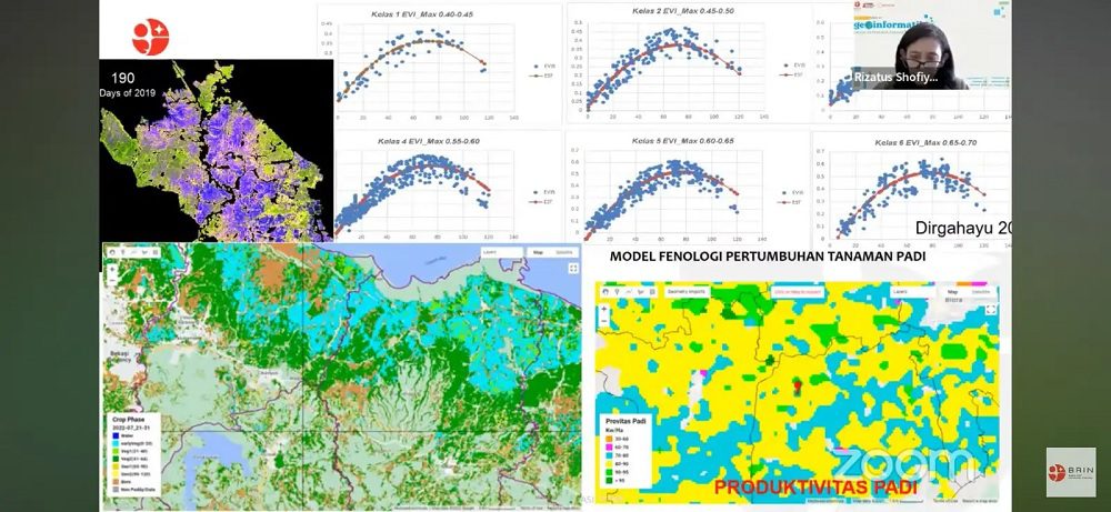 Peneliti Ahli Madya PRG BRIN Rizatus Shofiyati menjelaskan prospek dan tantangan riset geoinformatika untuk pemantauan lahan pertanian. Mencakup rencana tata ruang pertanian, identifikasi komoditas pertanian, perencanaan dan pengelolaan pertanian, dan asuransi pertanian.