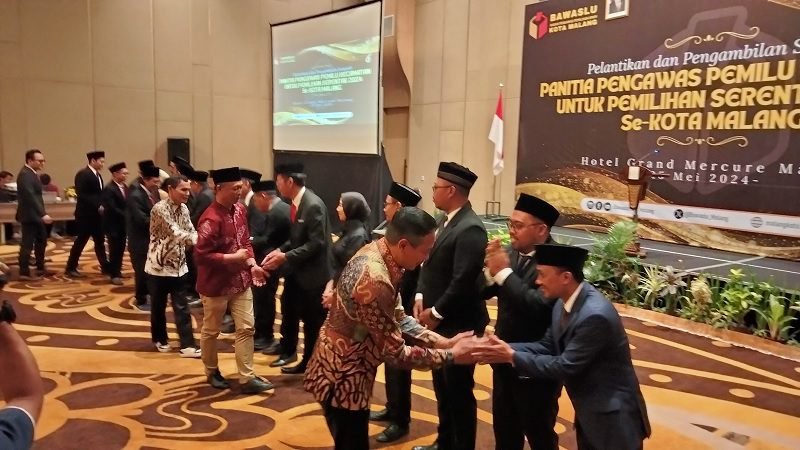 Kegiatan pelantikan ini digelar Bawaslu Kota Malang di Hotel Mercure Malang, Sabtu, (25/5/2024).