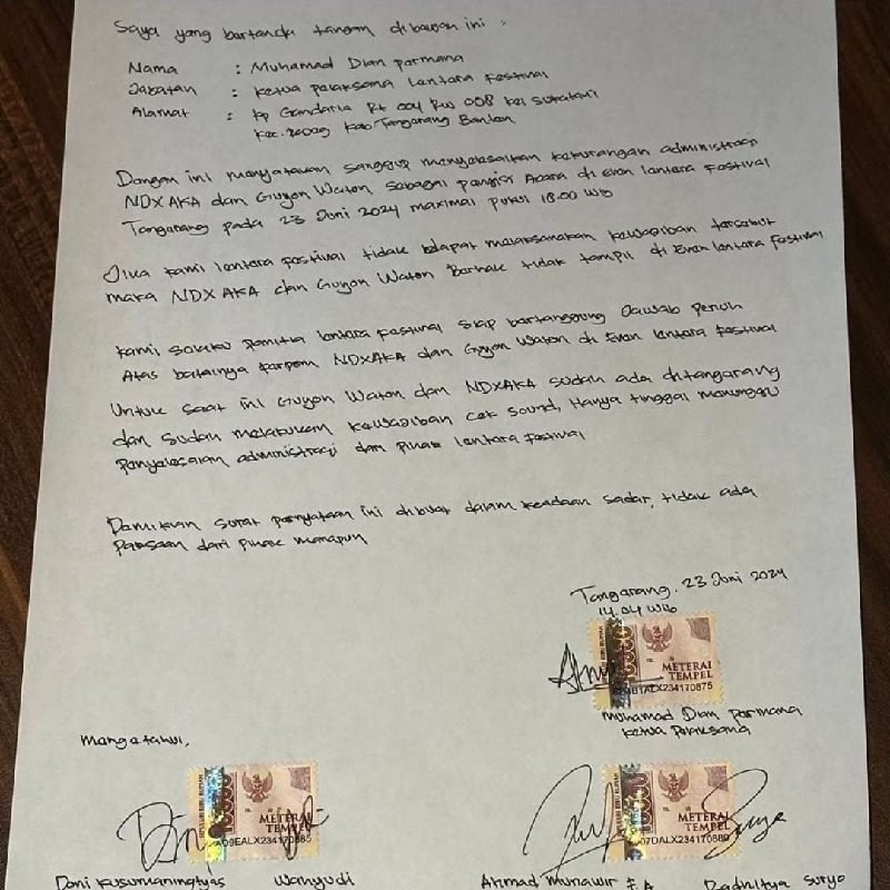 “Panitianya kabur, artis tidak dilunasi. Bahkan Guyon Waton dan NDX AXA udah datang dan minta maaf, tapi panitianya gak ada,” ujar seorang penonton yang jauh-jauh datang dari Sumedang, dikutip dari media sosial.