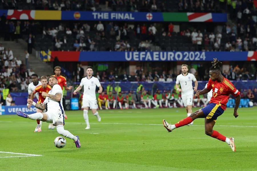 Tepat di menit ke-73, pendukung Inggris membuat Olympiastadion Berlin bergemuruh. Cole Palmer yang baru tiga menit masuk lapangan menggantikan Kobbie Maino, mencetak gol melalui tendangan keras ke tiang jauh gawang Unai Simón.