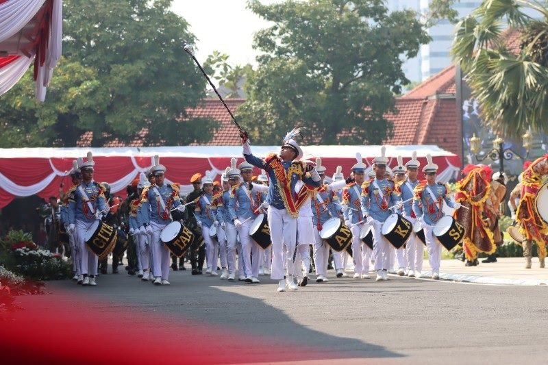 Sedangkan Drumband Gita Taruna Angkasa dari SMAN Taruna Angkasa Madiun, tampil luar biasa dan totalitas untuk memberikan pertunjukan drumband terbaiknya di Peringatan HUT RI ke-79 Republik Indonesia di Gedung Negara Grahadi yang juga dihadiri masyarakat umum. (*)