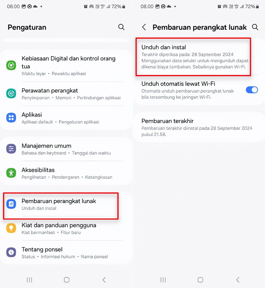 Kamu juga bisa mengecek secara rutin apakah ada update terbaru atau tidak di Galaxy A06 kamu, berikut caranya:
