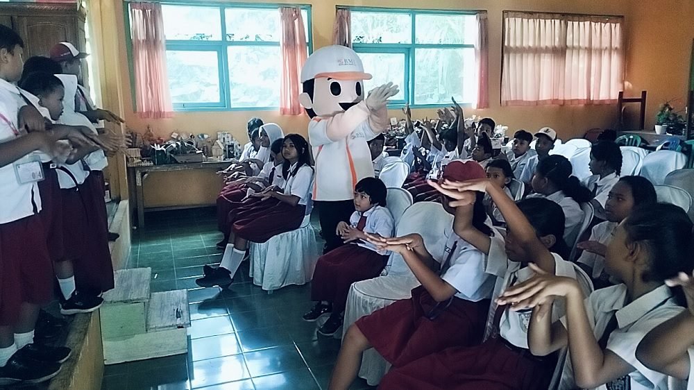 Tampak siswa siswi sangat antusias menyimak apalagi ditambah hadirnya SI YAHYA Boneka maskot BMH yang jug ikut meramaikan suasana.