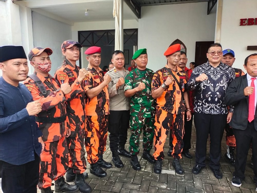 SIARINDOMEDIA.COM – Majelis Pimpinan Cabang (MPC) Pemuda Pancasila (PP) Kabupaten Malang bersinergi bersama TNI dan Polri dalam pengamanan Natal dan Tahun Baru (Nataru) 2025. Pengamanan meliputi sejumlah titik exit tol, gereja, dan objek vital lainnya. Mengenakan atribut khas doreng kebesaran organisasi, personil PP sangat antusias mengikuti kegiatan tersebut.