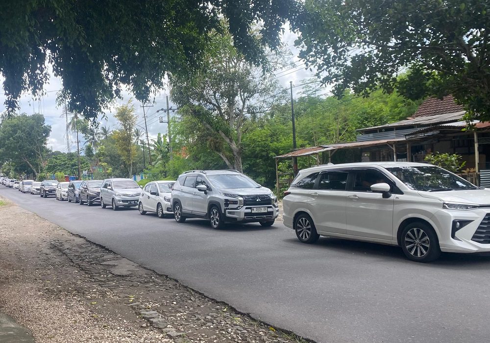 Hal ini membuat proses masuk menjadi lambat dan menimbulkan antrean kendaraan hingga lebih dari dua kilometer.