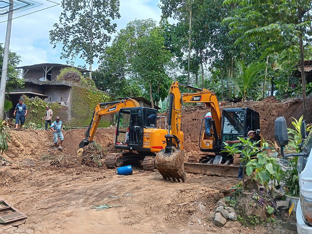 Antrean panjang kendaraan berat ini diduga berkaitan dengan aktivitas konstruksi atau proyek penggalian tanah yang tengah berlangsung di kawasan tersebut.