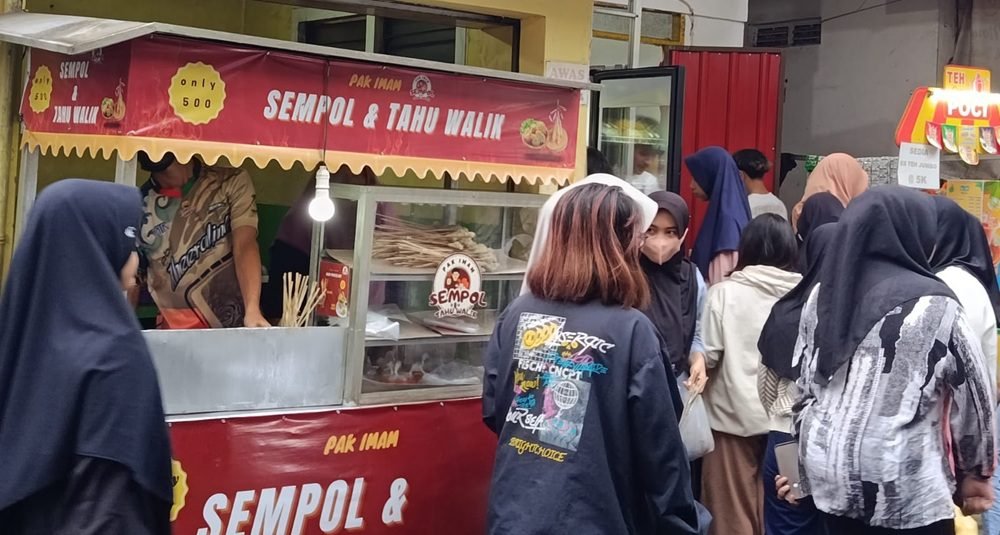 Kepadatan terlihat di beberapa tempat, terutama di sekitar warung-warung seperti ‘Es Teh Poci Waroeng Sultan’ dan kios ‘Sempol & Tahu Walik Pak Imam’. Pengunjung yang datang bukan hanya pejalan kaki, tapi juga pengendara motor yang sering berhenti di tengah jalan untuk membeli makanan, membuat jalan ini semakin sulit dilalui.