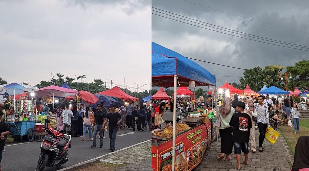 “Ya … di sini selain beli makanan buat buka juga mau duduk santai sambil nunggu adzan,” ujar salah satu pengunjung.
