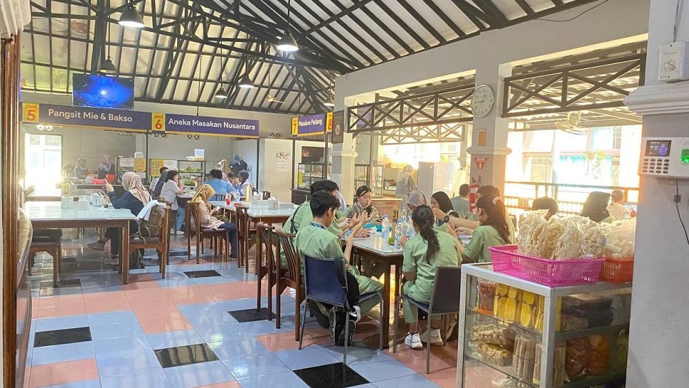 Sejumlah pengunjung, mulai dari tenaga medis hingga keluarga pasien, tampak menikmati sarapan mereka sebelum memulai aktivitas. Salah satunya adalah Astuti, keluarga pasien yang tengah duduk di salah satu sudut kantin sambil menyantap soto ayam hangat.