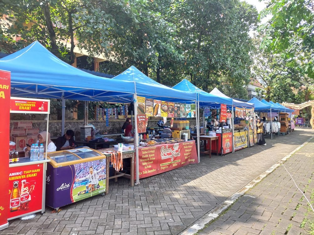 Pengunjung yang datang tampak antusias menikmati kuliner, sambil duduk di bawah pohon yang sudah dialasi karpet di beberapa tempat. Selain itu, terdapat booth foto yang bisa digunakan oleh siapa saja.
