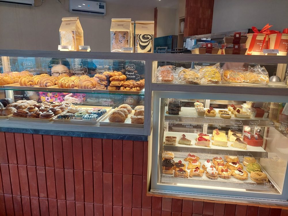 Toko ini menyajikan berbagai jenis pastry mulai dari Croissant Butter, Croissant Smoked Beef Cheese, hingga Choco Ribbon dan Holy Crown Strawberry. Tak hanya itu, deretan cake premium seperti Tiramisu Cake, Matcha Cheese Bubble, dan Strawberry Cheese Cake juga tersedia. Bahkan, varian dessert seperti Paris Brest dan Cromboloni dengan berbagai isian kekinian juga menjadi daya tarik dari kedai roti ini.