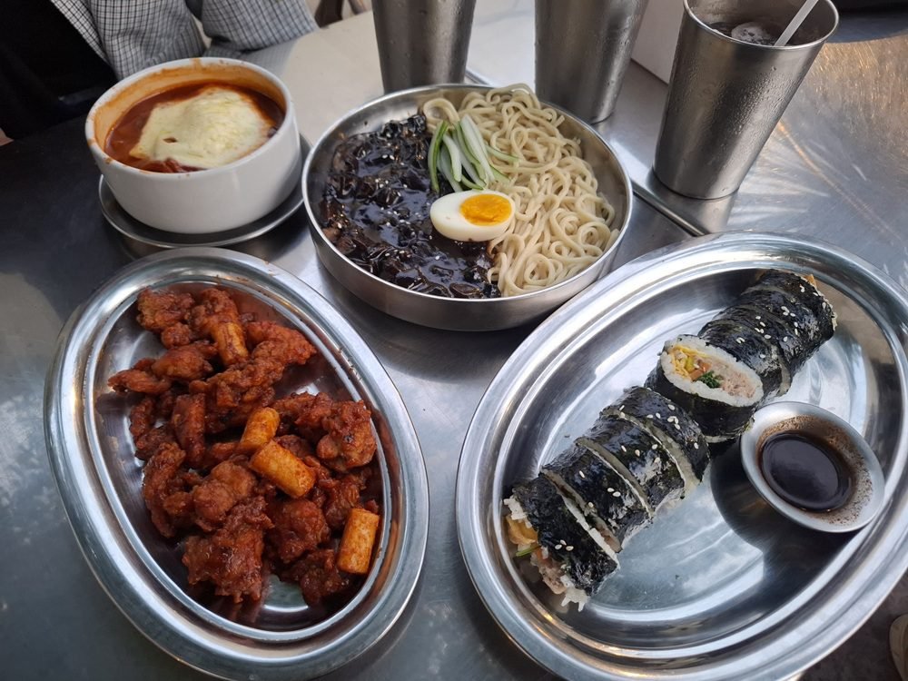 Kamu bisa mencicipi dakgangjeong (ayam goreng manis pedas), kimbab, tteokbokki, dan jajangmyeon.